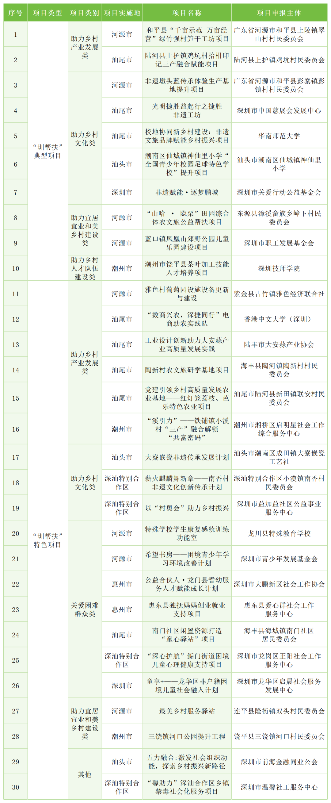 “圳帮扶”资助计划最终确定了30个