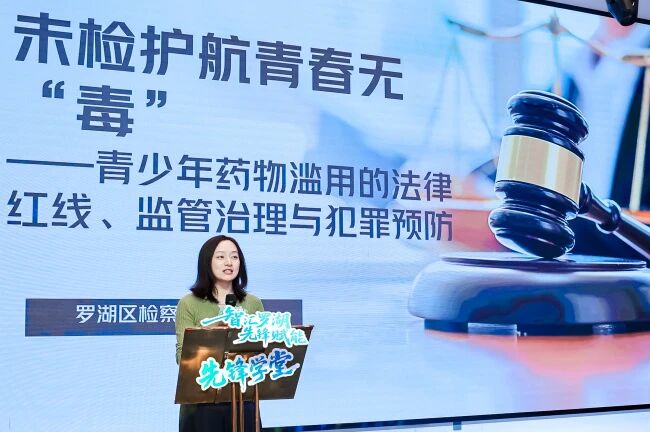 罗湖区人民检察院第三检察部副主任、一级检察官翟卉钰围绕《未检护航青春无“毒”——青少年药物滥用的法律红线、监管治理与犯罪预防》,从司法实践角度梳理青少年涉毒相关法律规定,解析监管治理举措与犯罪预防要点,明确“法律守护青春”的边界。
