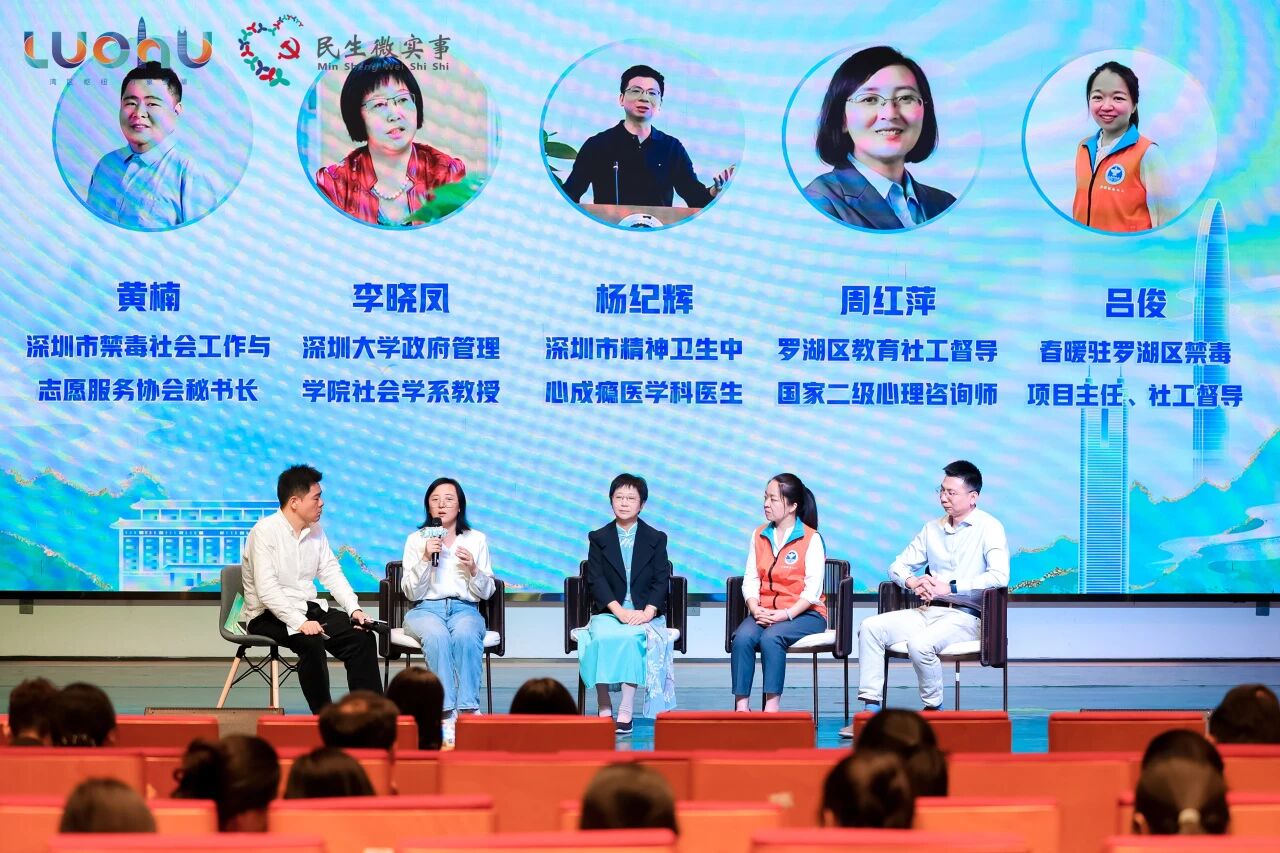 随后的圆桌论坛环节,以《如何构建青少年药物滥用"防护共同体"》为核心议题,特别邀请深圳市禁毒社会工作与志愿服务协会黄楠秘书长主持,邀请李晓凤教授、杨纪辉医生、周红萍督导(罗湖区教育社工督导)、吕俊主任共同参与讨论。