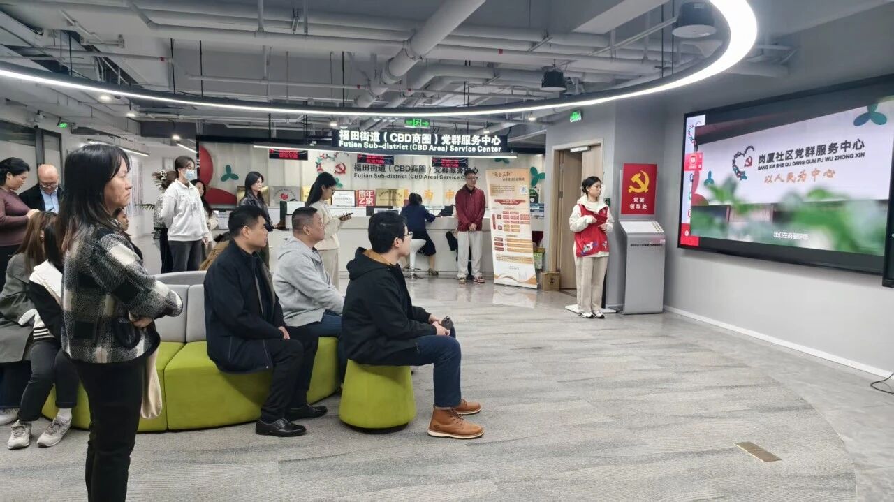 活动伊始,参会代表走进福田CBD商圈党群服务中心,实地观摩了商圈党校、商圈夜校、企业服务平台与企业展示平台四大功能板块,深入了解“五星风采”党课体系、“CBD青年探趣营”品牌项目、“三员合一”企业服务机制以及“政务超市”一站式审批服务等创新实践。参访代表纷纷表示,该中心以党建引领推动服务创新、资源整合与效能提升的实践为社会组织服企助企提供了可借鉴的宝贵经验。