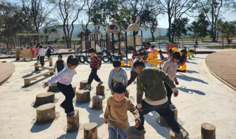 蓝口镇凤凰山公园的儿童乐园,迎来了新年的第一批小客人,齐坑幼儿园的小朋友们,欢声笑语萦绕小公园。儿童乐园由深圳市乡村振兴和协作交流局牵头,深圳市慈善会“圳帮扶”项目出资公益支持,深圳市总工会,深圳市职工发展基金会及蓝口驻镇帮扶工作队积极谋划,历经数月筹建,终于初见成效。乐园由最初的一片荒芜野树林到如今生机勃发,成为蓝口青少年儿童的快乐天堂,儿童乐园的设施满足不同年龄的儿童活动需求,即将铺设沙池及草皮,项目赶在新年前完工,必将成为蓝口儿童寒假和新年户外活动的热门打卡地。