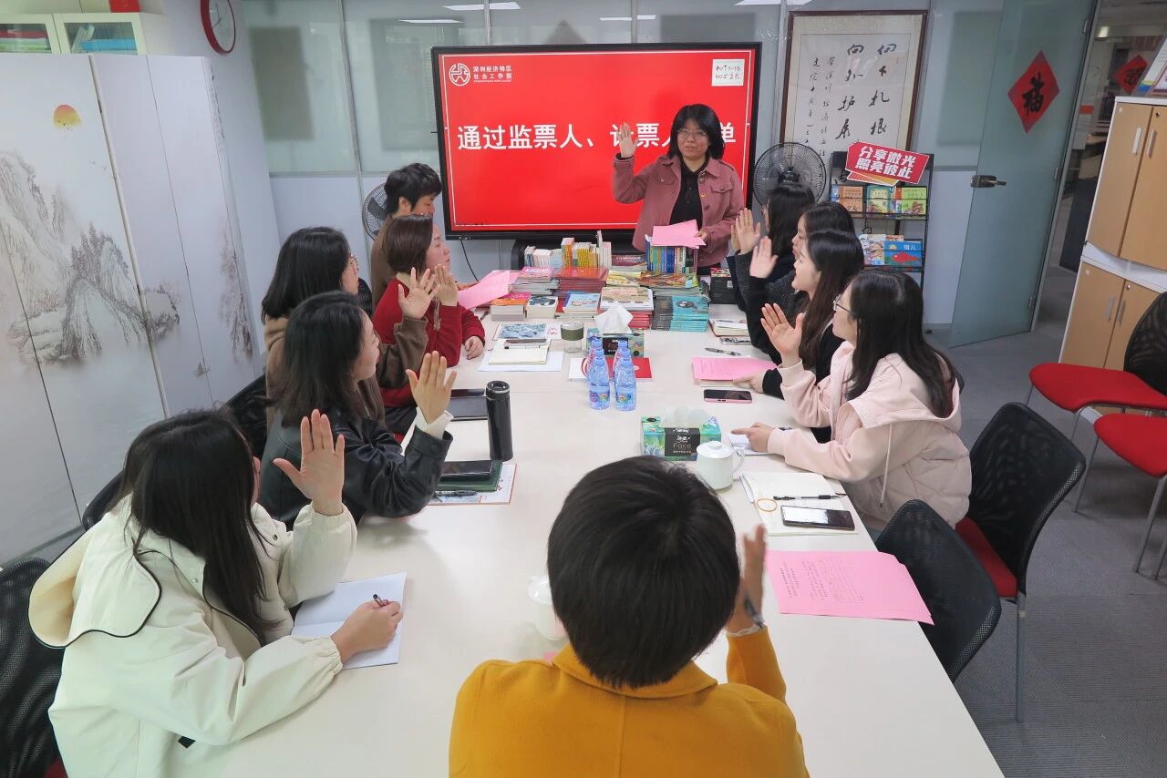 随后,大会进入选举环节。全体代表审议并表决通过了《深圳经济特区社会工作院妇女委员会成立大会选举办法》及委员候选人名单等议案,在规范有序的差额选举中,余令、陈英花、王慧三位同志当选为第一届妇女委员会委员。