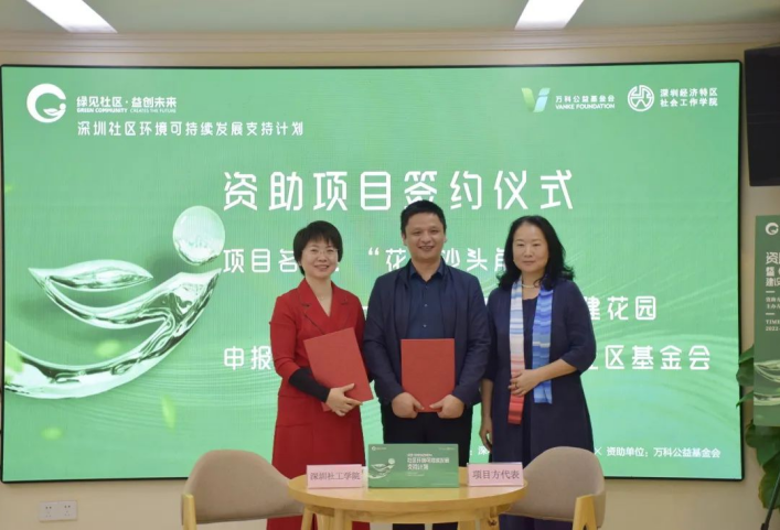 3月29日,由万科公益基金会资助,深圳经济特区社会工作学院负责统筹实施的“绿见社区·益创未来——深圳社区环境可持续发展支持计划”(简称“绿益计划”)举行了项目签约仪式暨公益微Talk活动。深圳市社会组织管理局副局长白凌、深圳市城管和综合执法局公园管理中心副主任梁治宇莅临了活动主会场,活动还邀请了行业专家学者、协作单位代表、项目方代表以及媒体代表等以线上或线下的方式共同参与。