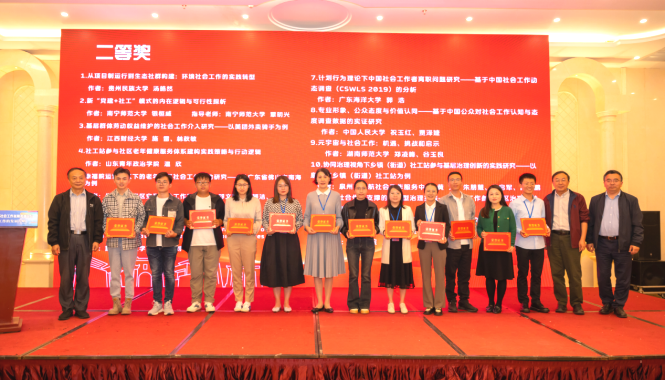 在论坛闭幕式上,中国社会工作学会副会长李迎生宣读了年会获奖论文名单,最终获奖论文43篇,其中一等奖6篇、二等奖12篇、三等奖25篇。