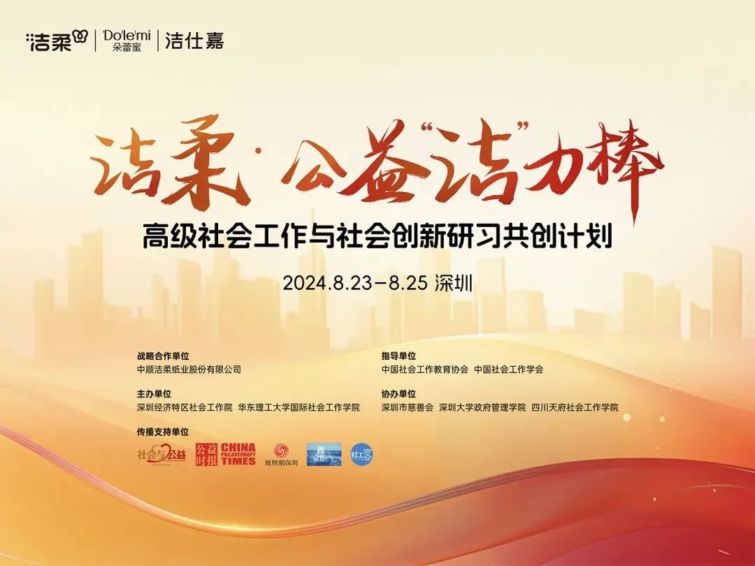 8月23日,由中国社会工作教育协会、中国社会工作学会指导,中顺洁柔纸业股份有限公司战略合作,深圳经济特区社会工作院、华东理工大学国际社会工作学院联合主办的洁柔·公益“洁”力棒——高级社会工作与社会创新研习共创计划(以下简称公益“洁”力棒计划)顺利启动。为帮助共创伙伴进行跨界交流,激发其创新公益思维,公益“洁”力棒计划邀请了四位嘉宾老师分别围绕不同重要议题进行了主题授课。
