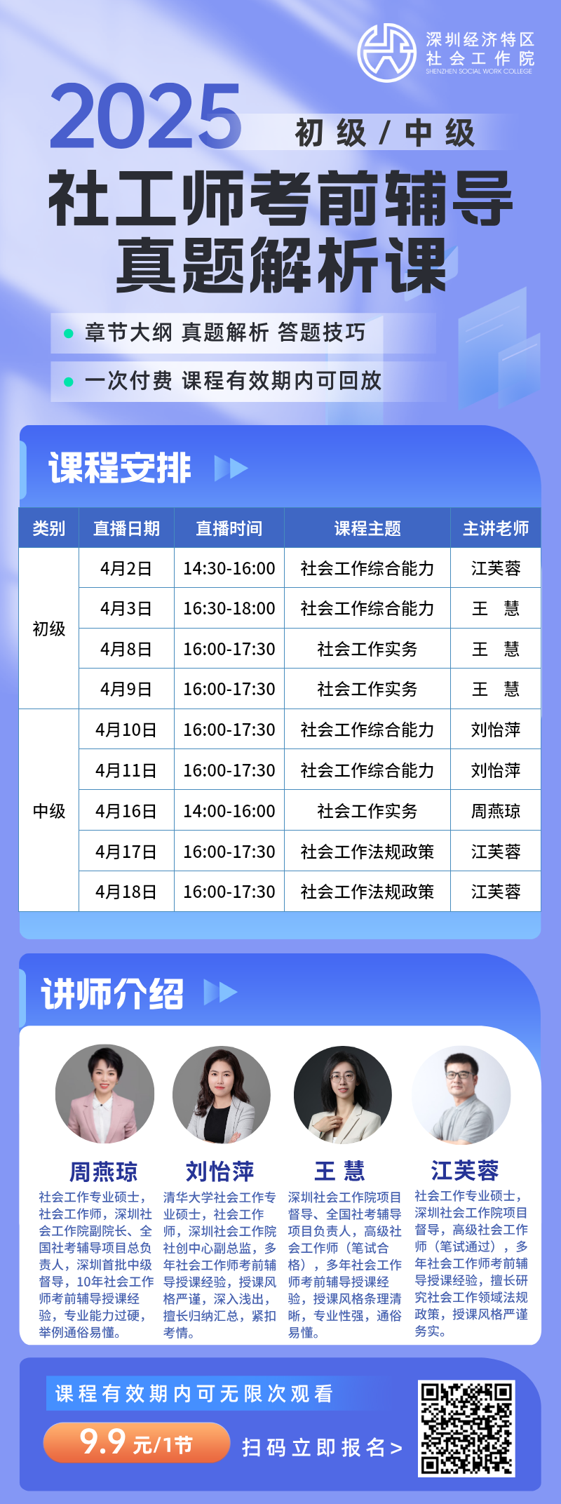 社工考试日益临近,你是否已经准备充分?面对海量的知识点,是否感觉无从下手?别担心,我们为你精心准备的真题带练与答题技巧直播课陆续开讲,助你一臂之力!
