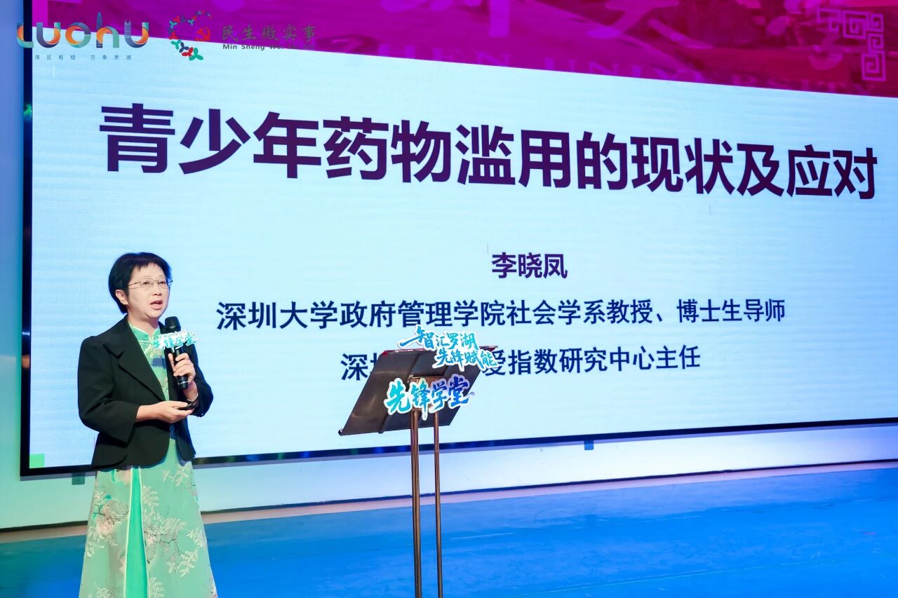 主题分享环节,四位嘉宾从不同维度带来深度解读。深圳大学政府管理学院李晓凤教授以《青少年药物滥用的现状及应对》为题,结合数据与案例剖析当前青少年药物滥用的趋势、成因,提出“家庭-学校-社区”协同干预的应对框架。