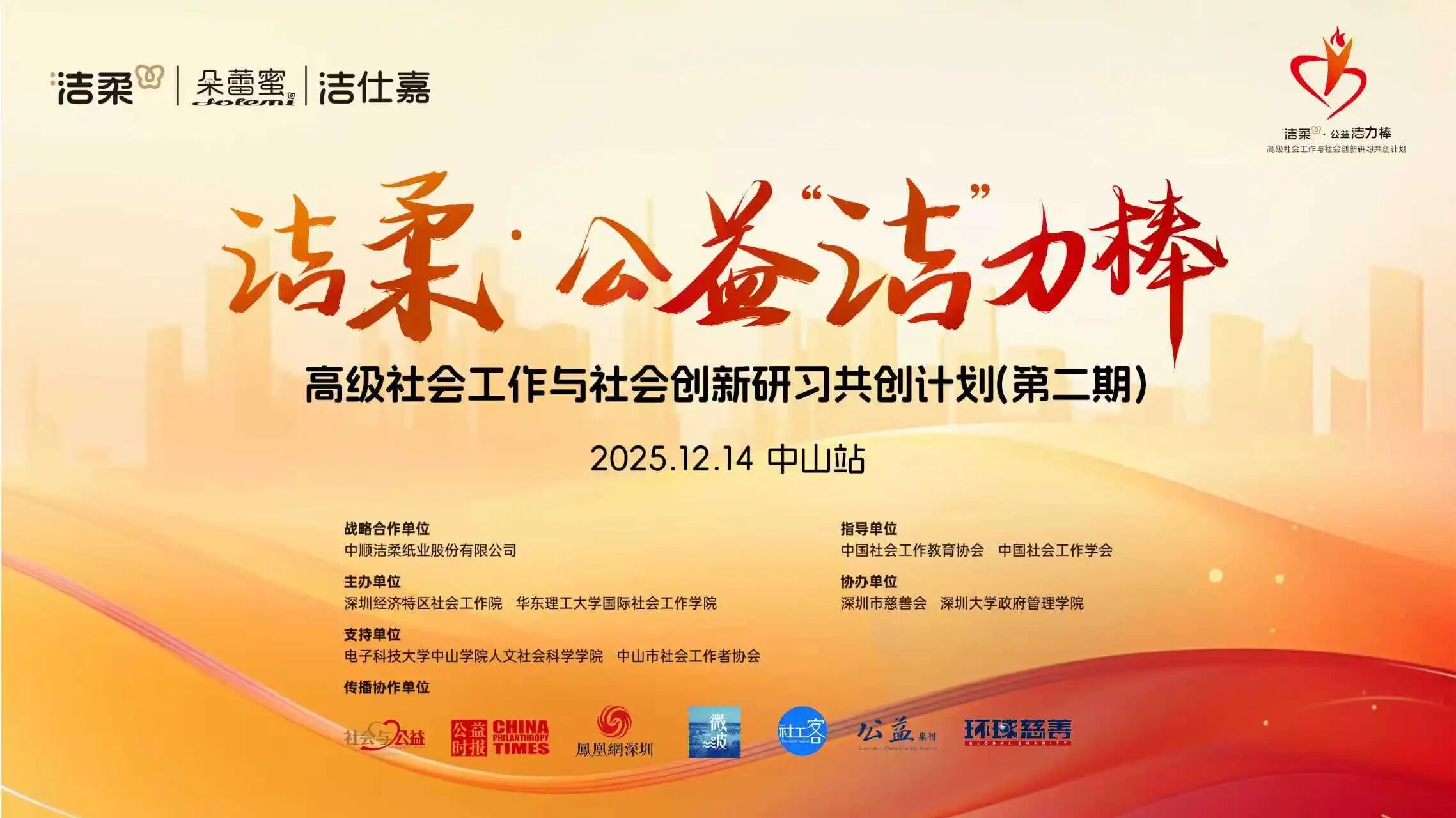 12月14日,由中国社会工作教育协会、中国社会工作学会指导,中顺洁柔纸业股份有限公司战略合作,深圳经济特区社会工作院与华东理工大学国际社会工作学院联合主办的“洁柔·公益‘洁’力棒”(第二期)“讲好中国社工故事”——中国特色社会工作高质量发展研讨会在伟人故里中山成功举办。本次活动现场吸引来自高校、公益组织等齐聚一堂,不仅是第二期研习共创计划的总结盛会,更是一次汇聚行业智慧,共绘发展蓝图的高层次对话。