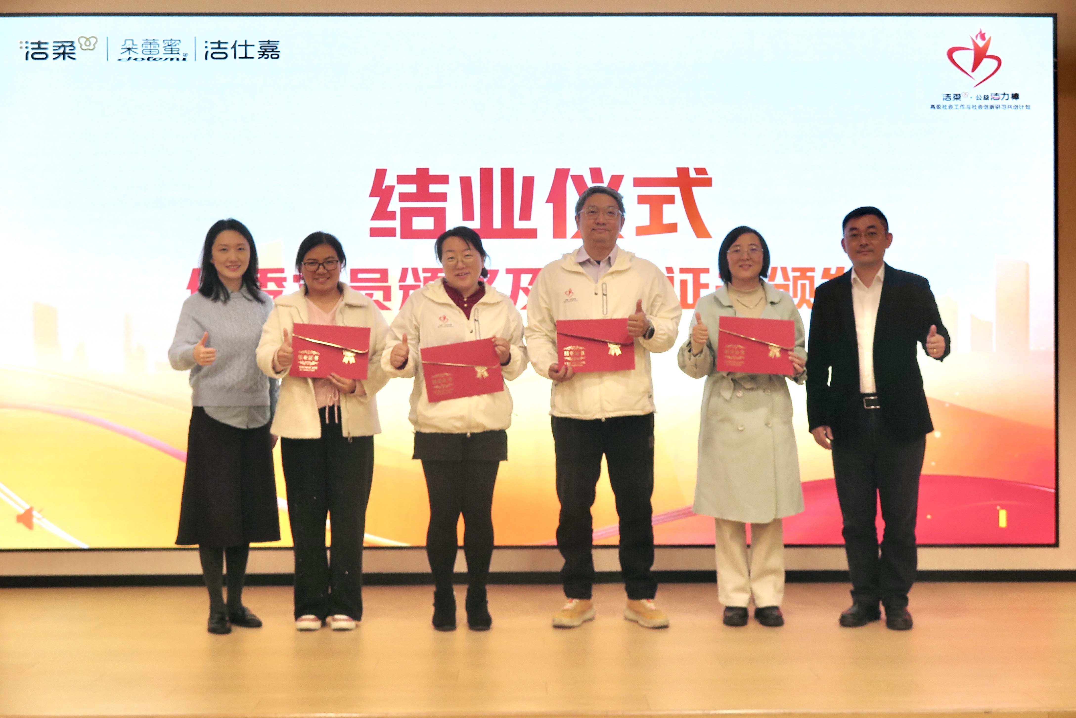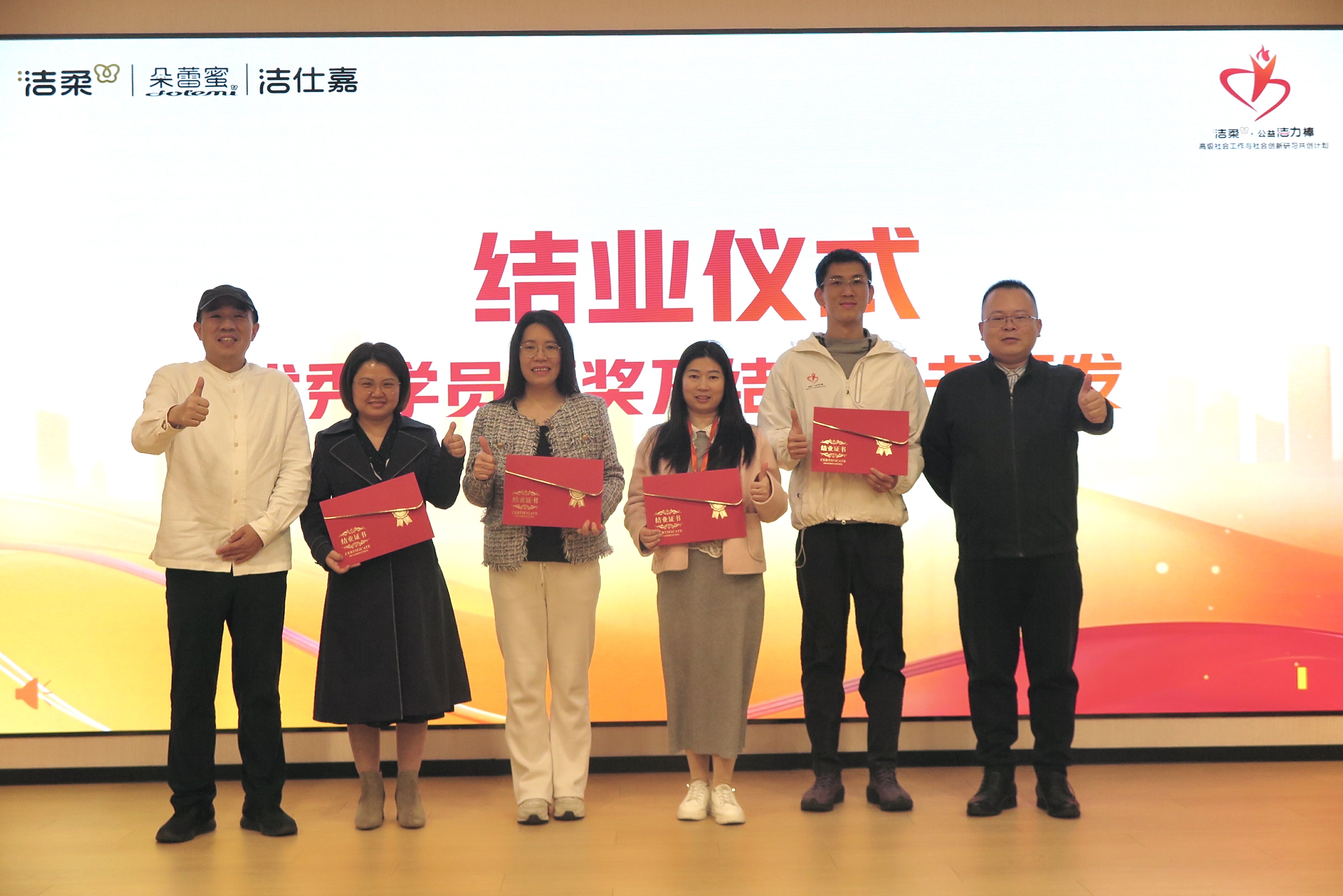 活动高潮是隆重的结业与表彰仪式。在回顾了记录项目点滴与学员心声的视频后,主办方为王秀明、罗伟星等十位在项目中表现卓越的“优秀共创伙伴”颁发了奖项,并为全体学员授予结业证书,标志着第二期“洁柔·公益‘洁’力棒”高级社会工作与社会创新研习共创计划圆满收官。