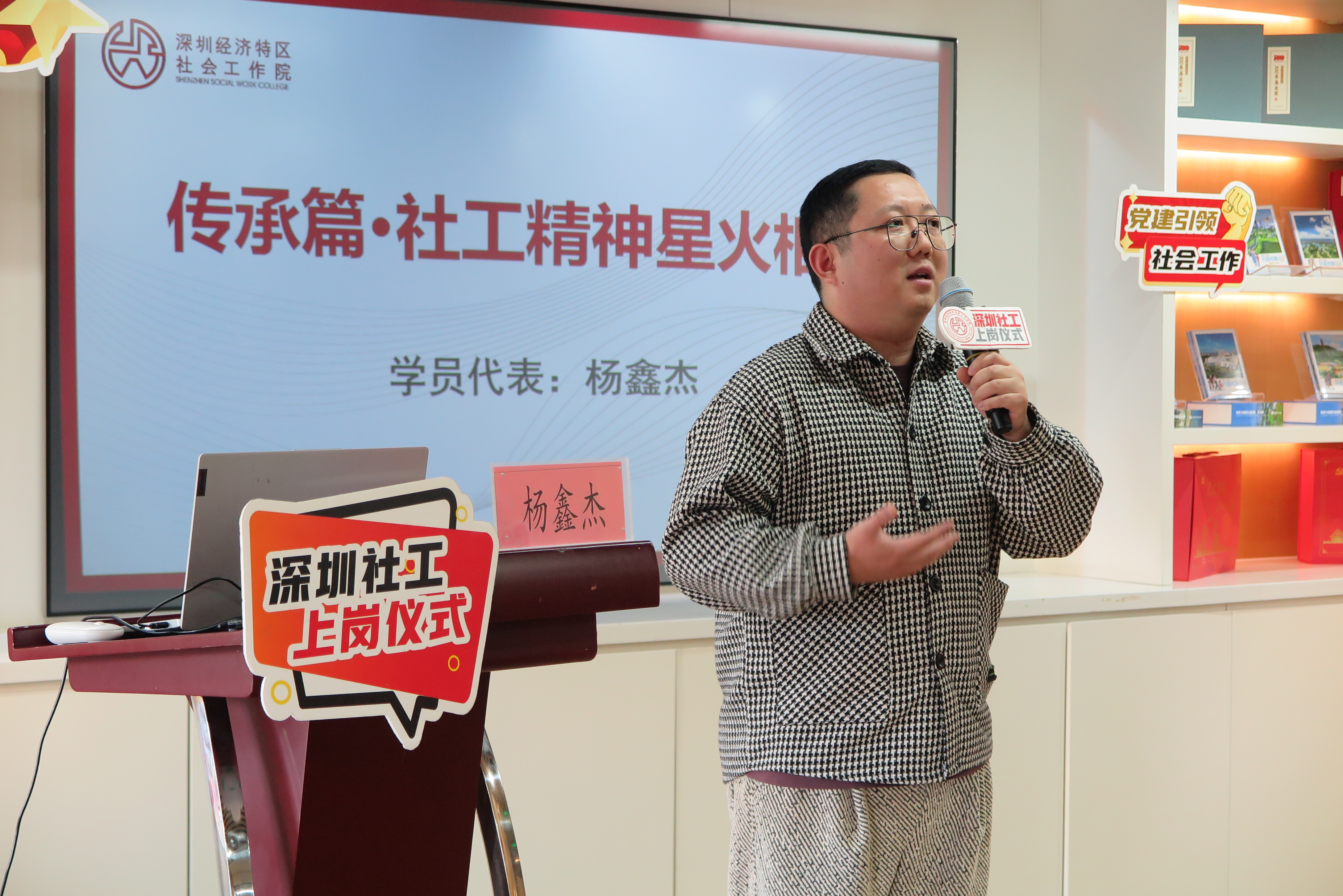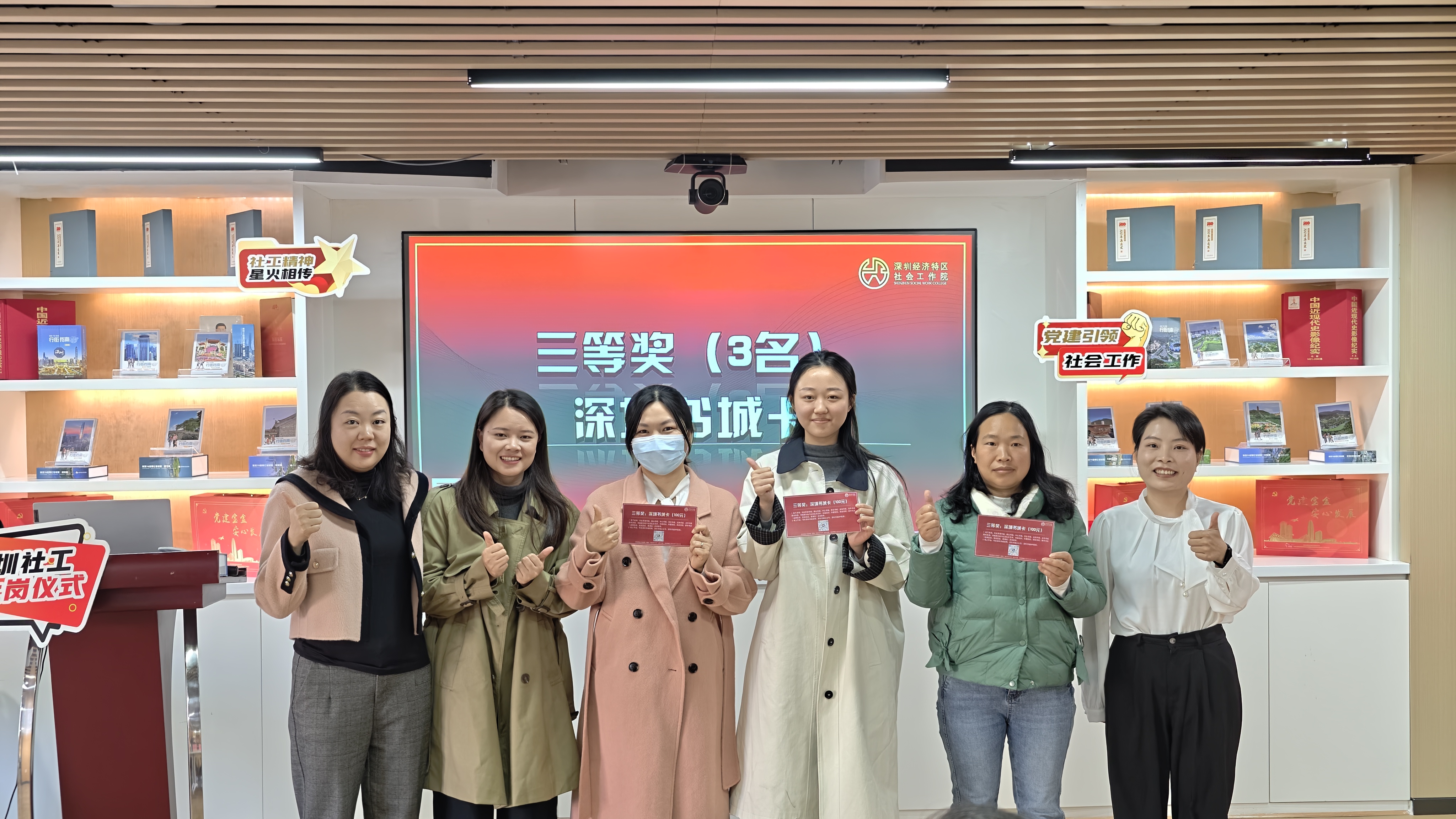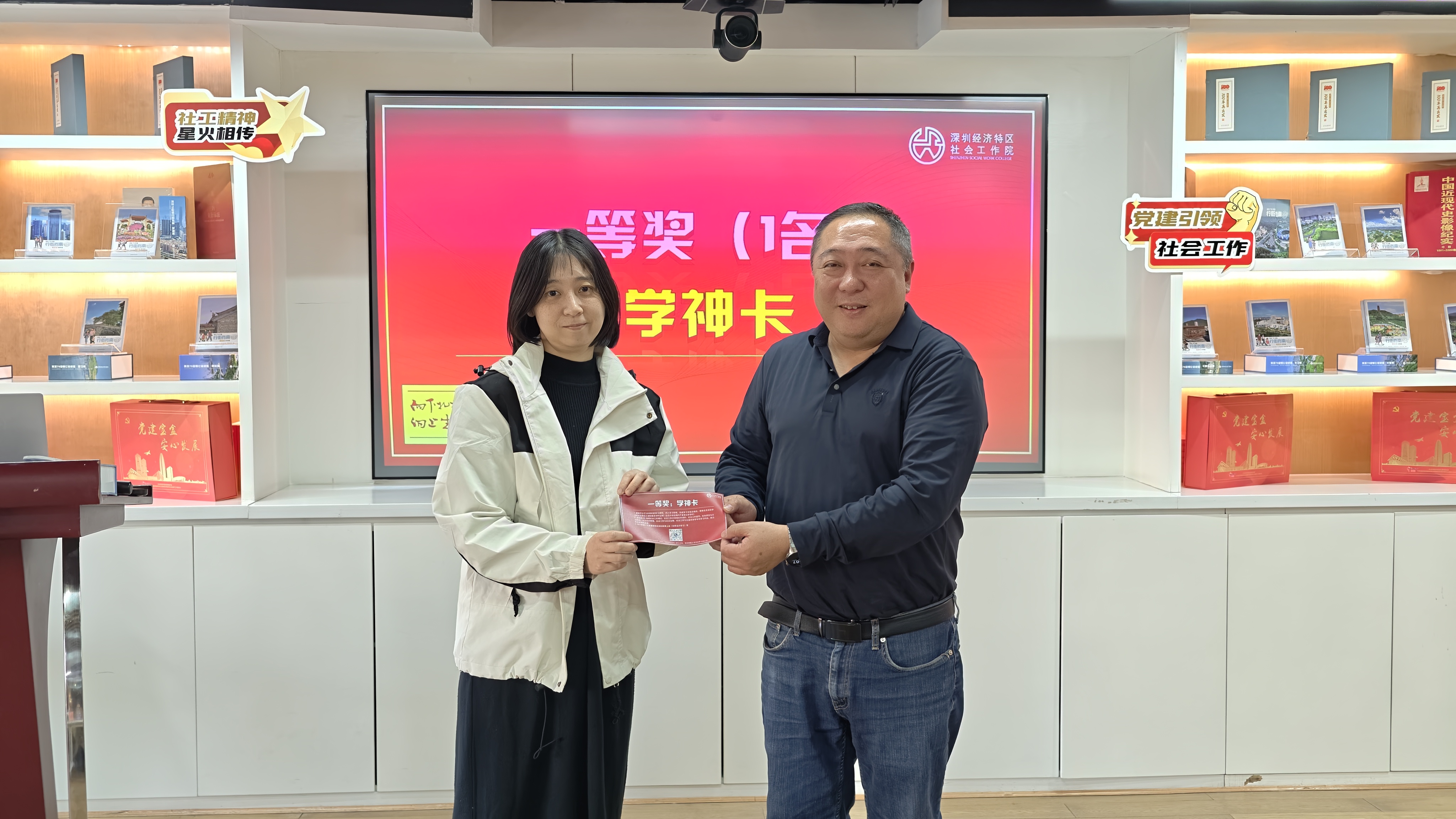轻松欢乐的抽奖环节为仪式增添了满满惊喜:深圳书城卡、不少于80学时继续教育课程的“社工网院”学霸卡、不少于100学时高阶课程的“社工网院”学神卡,每份奖品都承载着对新社工专业成长的深切期许,助力大家在精进之路上稳步前行。