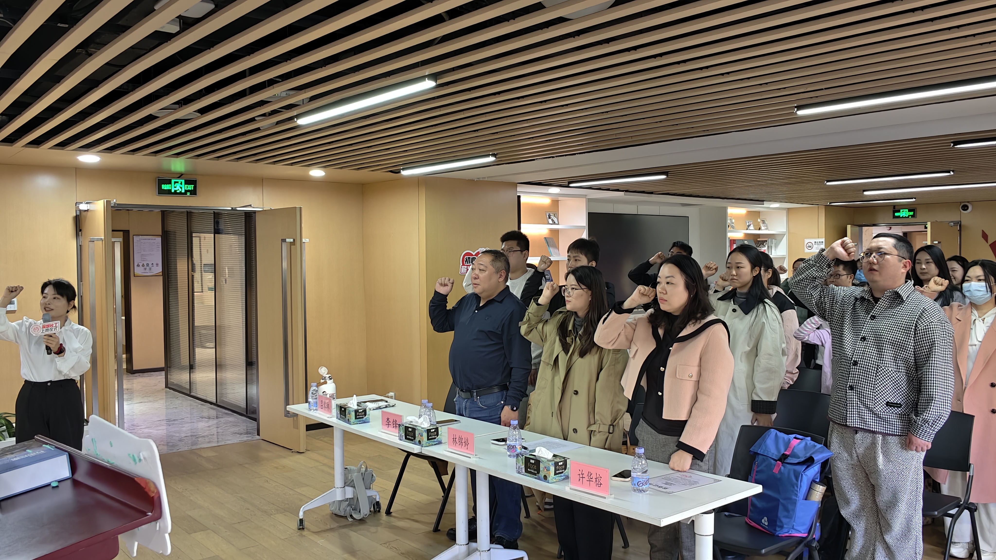 深圳市宝安区益民社会工作服务中心杨鑫杰、深圳市升阳升社会工作服务社封向荣两位学员代表分享了培训心得,字里行间满是对社工职业的热忱与憧憬。在吕琴琳副总干事的带领下,全体新社工起立握拳庄严宣誓,线上学员同步“云宣誓”,用铿锵誓言许下对服务对象、对社会的责任与担当。